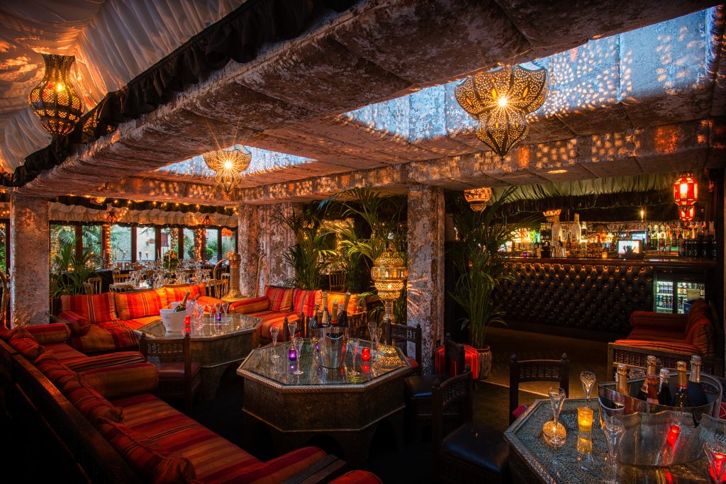 The Glasshouse offers an effortlessly luxurious setting, complete with a private bar, opulent Moroccan Lounge — with the option to transform into your own private dance floor — and an expansive terrace. Outside, Moroccan booths and a private al fresco bar create the perfect space for stylish celebrations, while an exclusive fairy-lit woodland copse provides a dreamy backdrop.